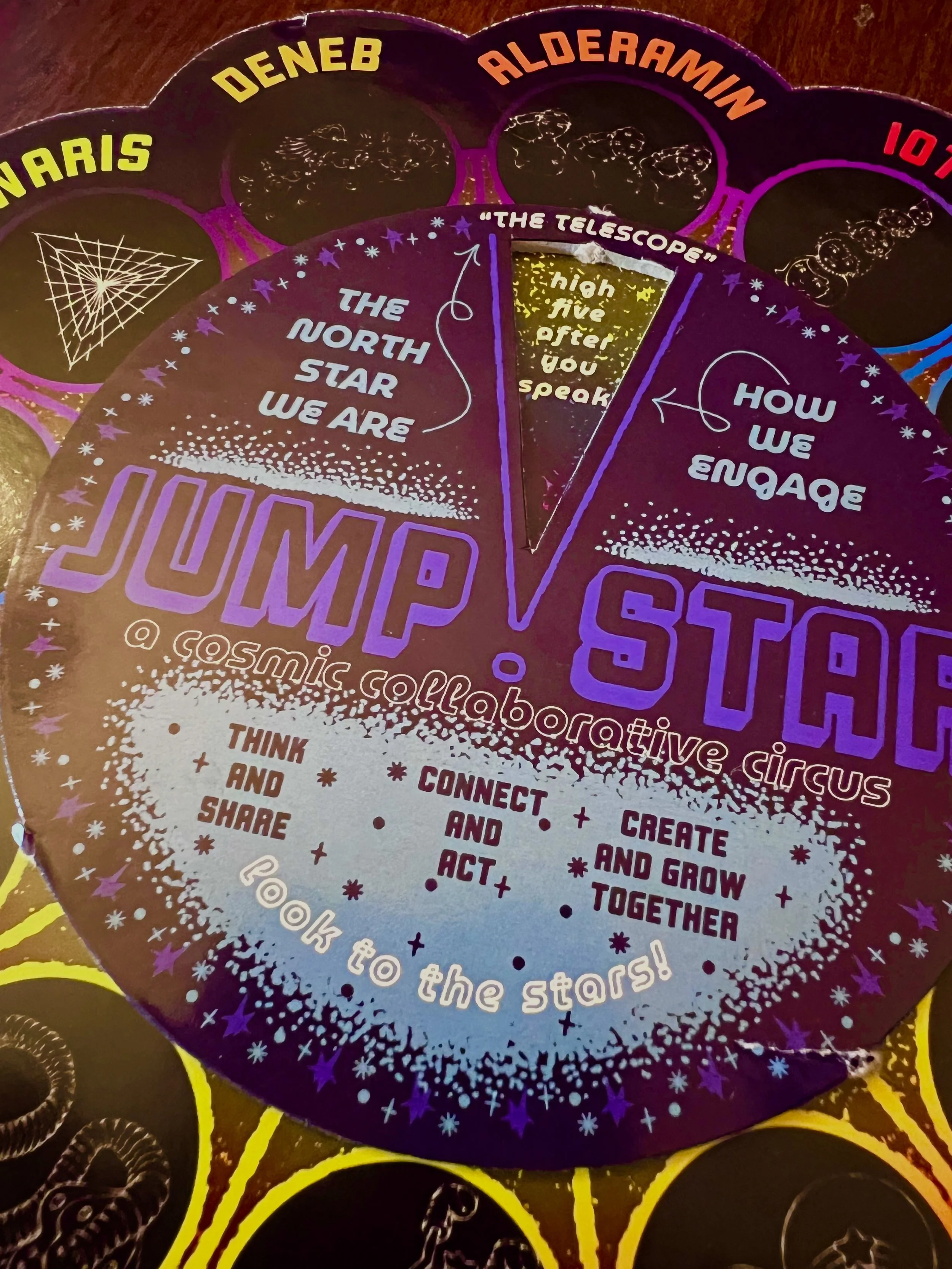 This durable vinyl sticker commemorates one of the stars of Earth’s great precession cycle: Deneb is a Super Blue Giant and will be Earth’s North Star in 9800 CE. Its magnitude is 1.25. In Western astronomy, Deneb is the bright star in the tail of the Swan (Cygnus) constellation. In Eastern mythology, Deneb is understood to be a bridge of magpies across the Milkyway, reuniting two lovers in the famous Qi Xi story. Within the Jump!Star world, Deneb is both forces at once. Always in motion, it is both the bridge and the swan. It is both connecting the lovers and finding its way back to love…